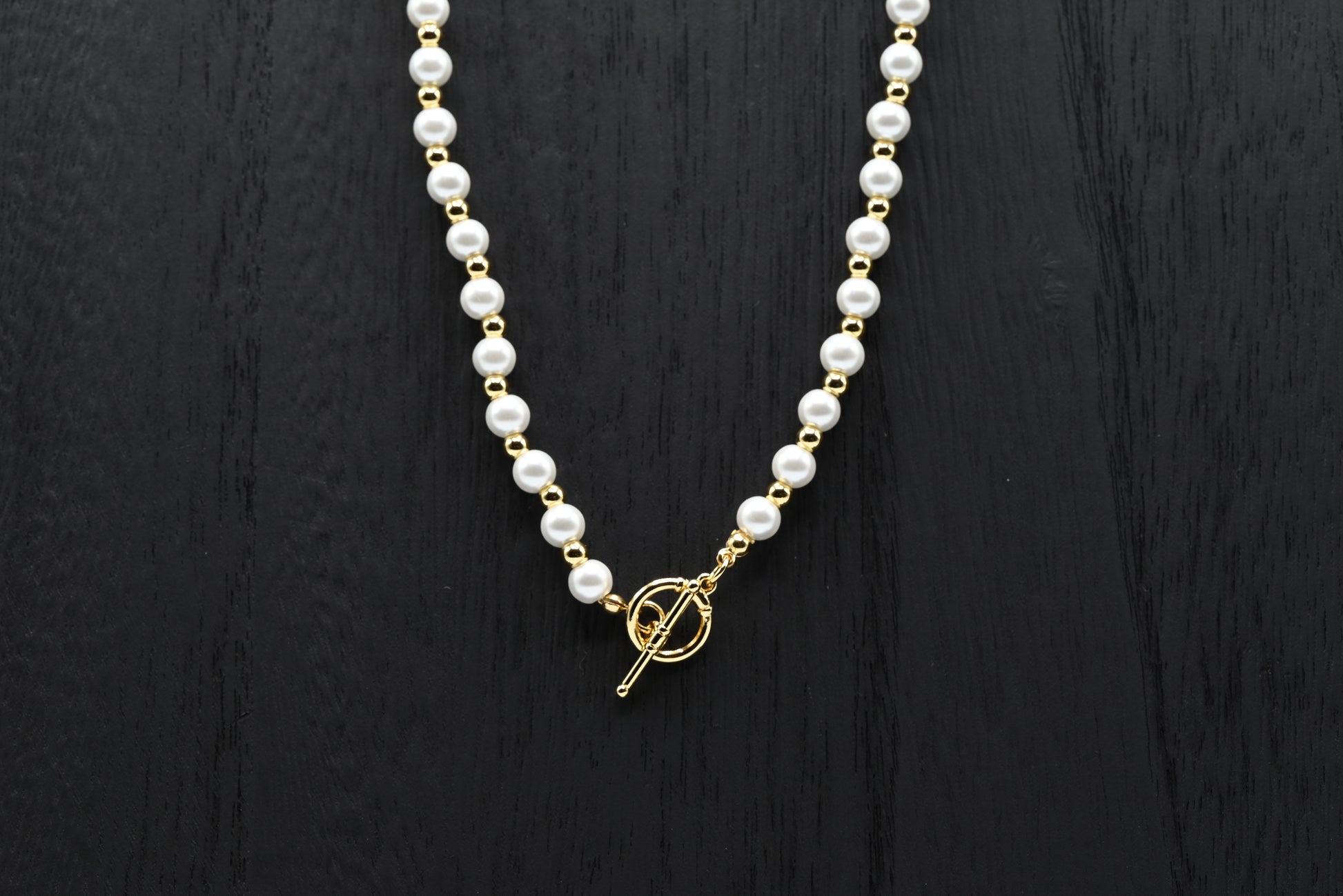 Classic Pearl & Gold Bead Necklace with Toggle Clasp 18K Gold Filled