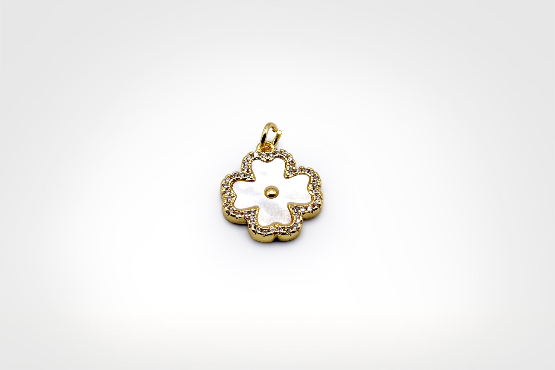 Clover Studded Mother Of Pearl Charm 18K Gold Filled / Silver
