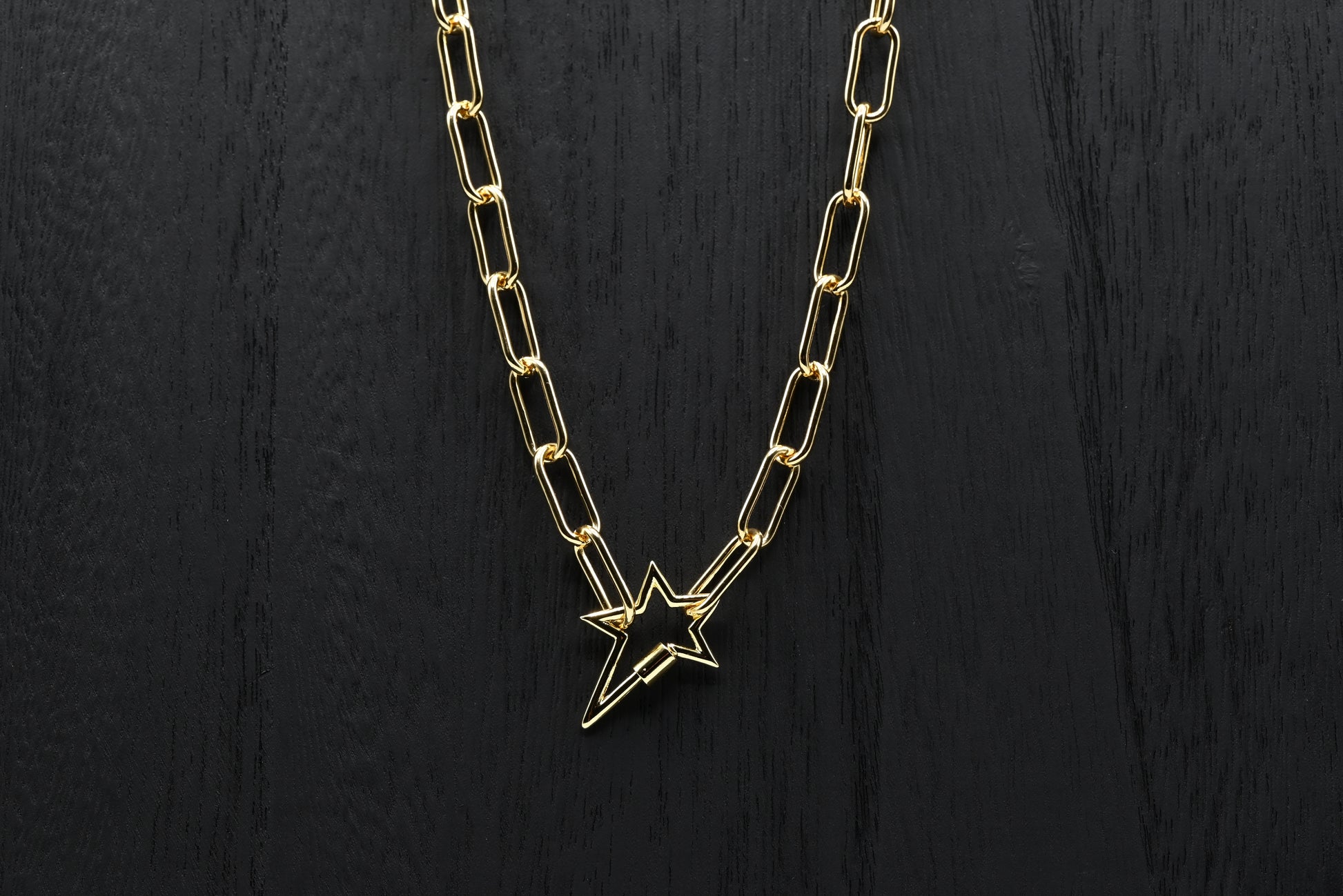 Chunky Elongated Star Screw Carabiner Enhancer Charm Necklace