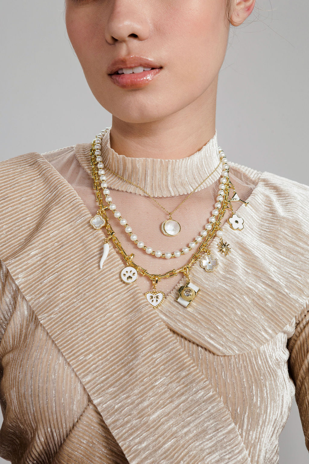 Capture memories in style with this vintage-inspired camera charm, available in classic black and soft ivory enamel. A sparkling crystal lens adds the perfect touch of glam for travel lovers and photo enthusiasts.