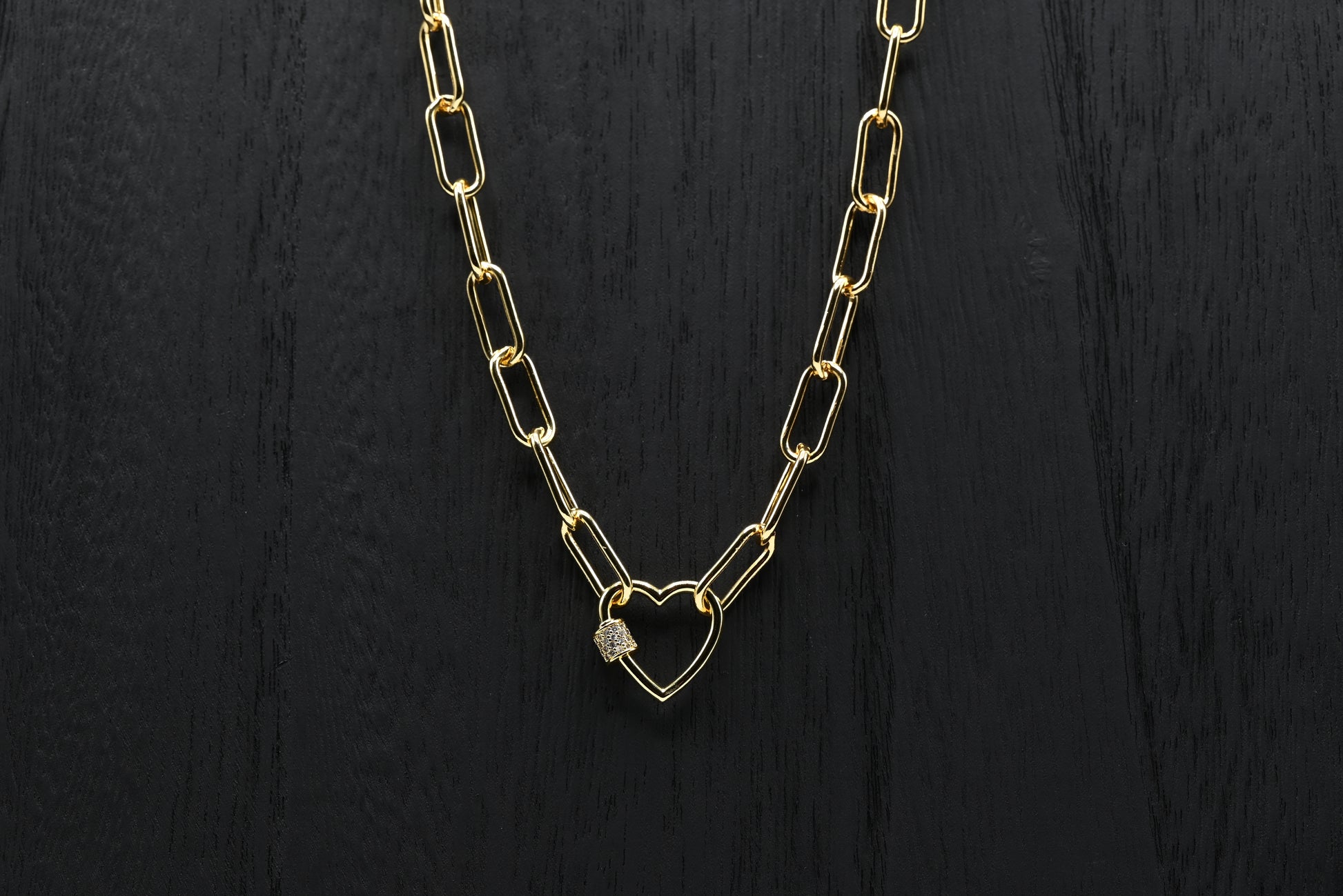 Chunky Heart Screw Diamond Carabiner Enhancer Charm Necklace
